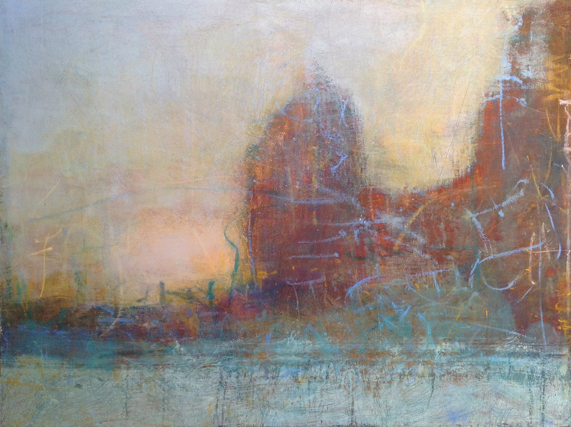 Sunset on the Seine, Oil & Wax on panel, 48" x 36" (122 cm x 91 cm), 2014